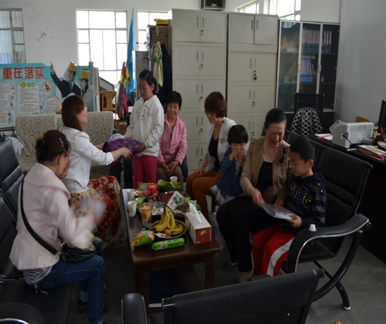 圖為勞務(wù)公司人員在為貧困家庭兒童捐衣物和圖書(shū)